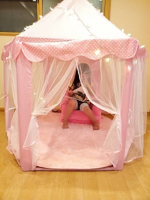 テントと一緒にピンクのプリンセス椅子クッションもお付けします♪