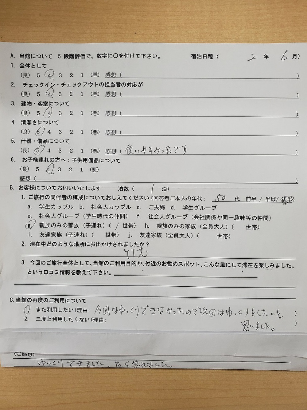チェックイン・チェックアウトは、気持ちの良い対応をして下さいました。