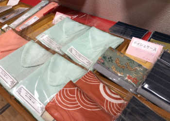 着物をリメイクした素敵なバッグ類や、お土産にも最適な足袋入れ、扇子入れ、和装用バッグなどの和小物なども置いてあります。