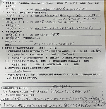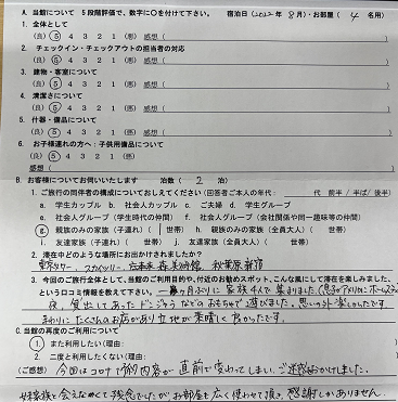(裏面)お陰様でゆっくり過ごすことができました。ありがとうございました。