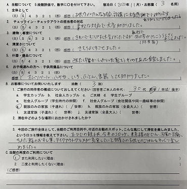 きれいですごしやすく大変よかったですが夜中まで外の音がけっこううるさくきこえました。(防音面)