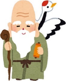 杖をつき、長寿の特徴である鶴や亀を従えた姿でも描かれる道教の三徳、福(子孫繁栄)・禄(財産)・寿(健康長寿)を備え、 人の寿命を知るとされています。