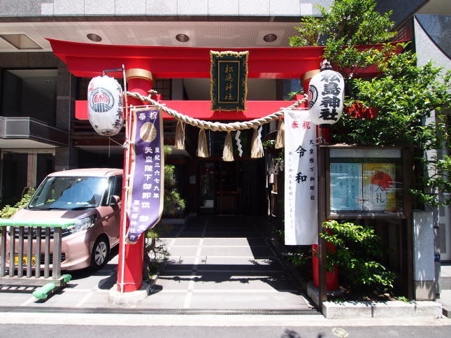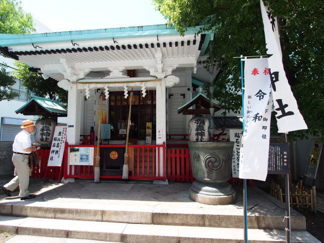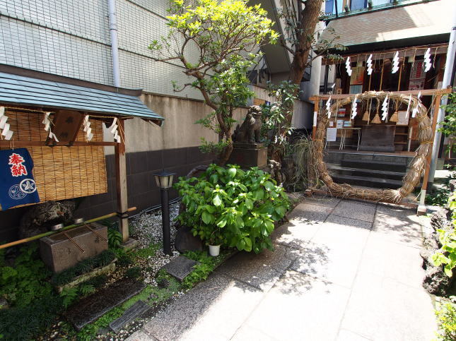 ビルとビルの間にひっそりと佇み、町内の人に親しまれている茶ノ木神社。