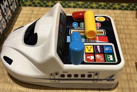 電車の車掌さんごっこができる音のでるオモチャもあります。