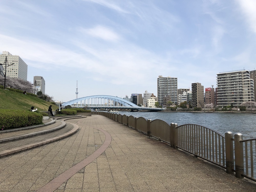 東京の摩天楼ビル群が見える景色の良い築地・月島方面へも、散歩やランニングの距離として最適です。