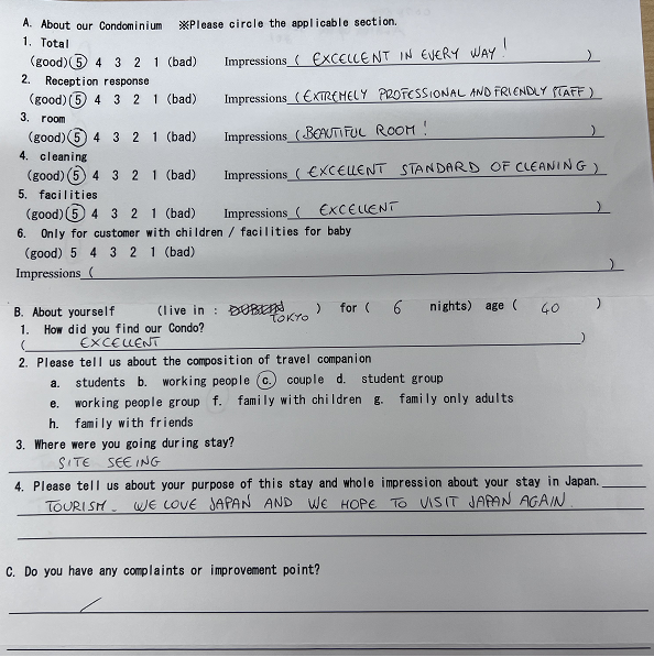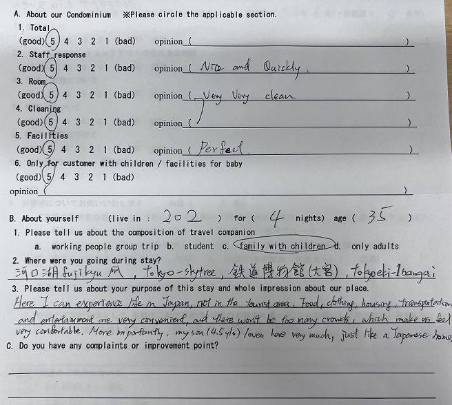 We enjoyed our stay at this place. Its location is very near the subway, and it’s large enough to be comfortable especially for families with kids like ours. Staff was also very easy to talk to, instructions were clear and our requests such as extra baby tub were granted.