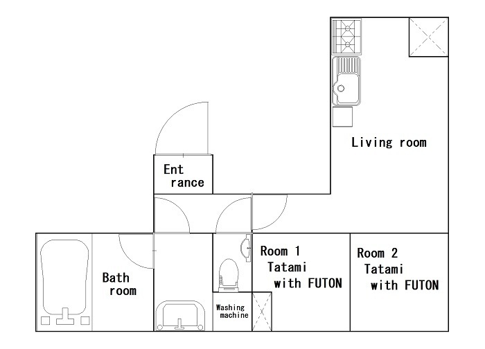 | Plan d’étage | Matelas Tatami, chambre de style japonais × 2, vers salon/salle à manger/ cuisine, salle de bains, toilettes |