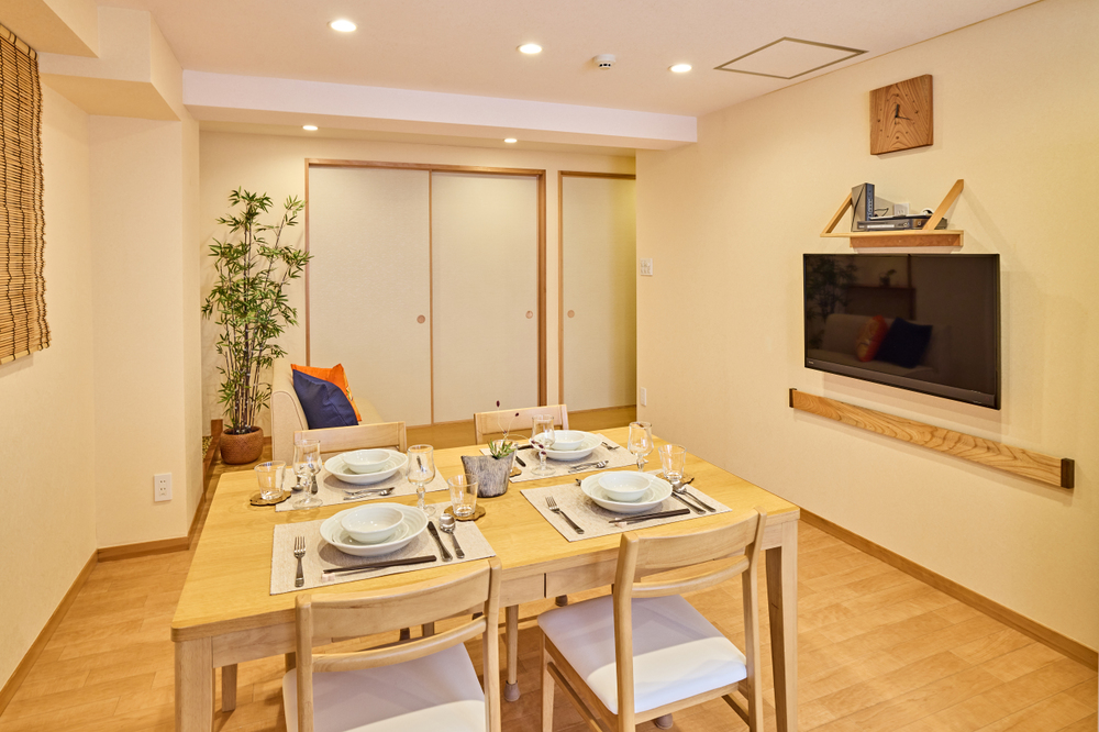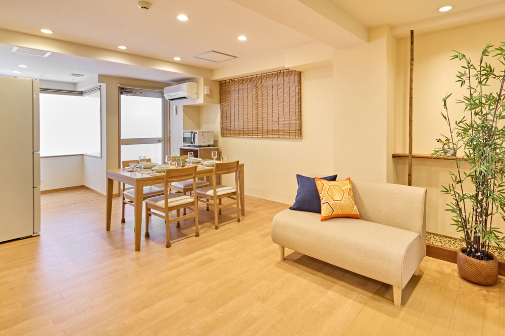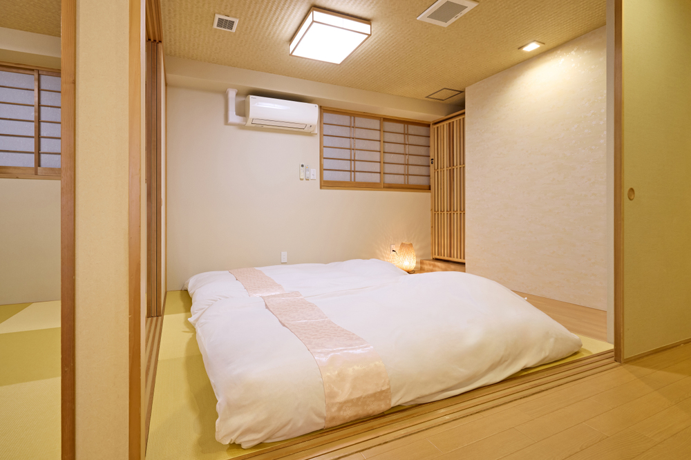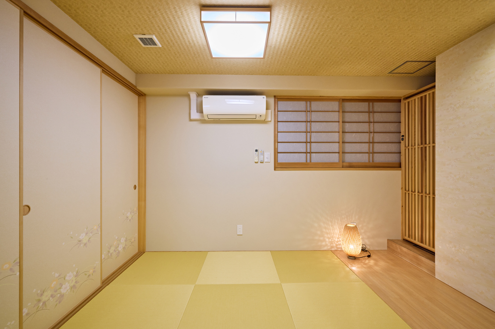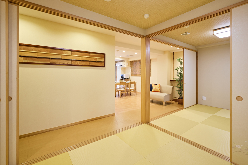L’hôtel dispose de deux chambres nommées Katarai (Conversation) et Kutsurogi (Détente). Cette chambre est conçue sur la base de 4 personnes. Le tarif s’applique à partir de 3 personnes, et une personne supplémentaire peut être accueillie pour un total allant jusqu’à 5 personnes. L’intérieur spacieux d’environ 60 m² se compose de deux chambres de style japonais et d’un salon. L’intérieur de style japonais est décoré de zelkova, de bambou et de sal, créant une atmosphère relaxante. La cuisine est équipée d’une cuisinière à gaz à deux feux. La salle de bains et les toilettes sont indépendantes.