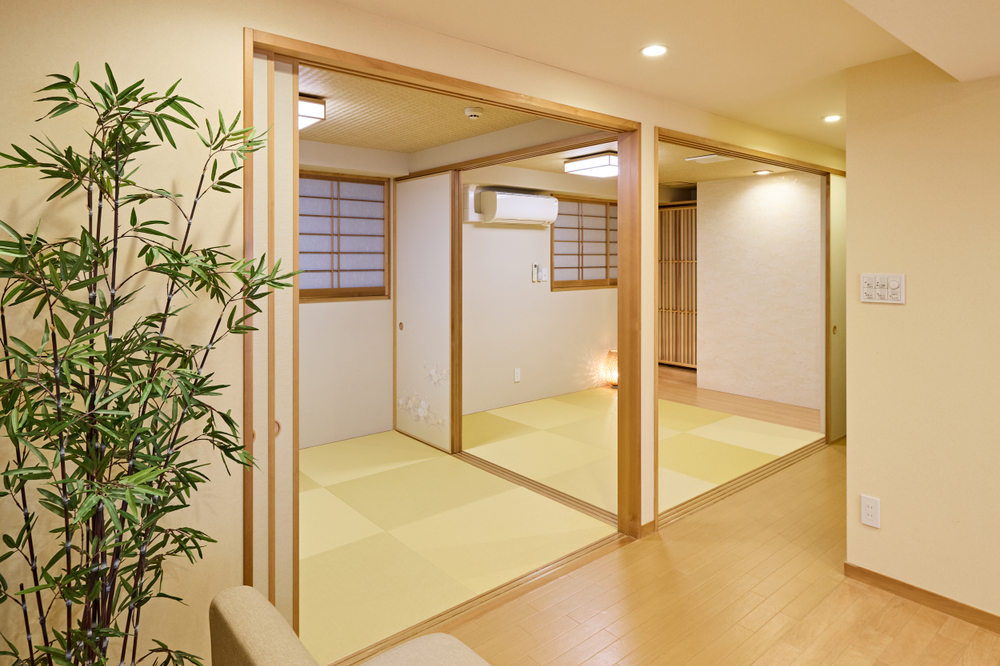 Les chambres Tatami peuvent être séparées par des portes coulissantes.