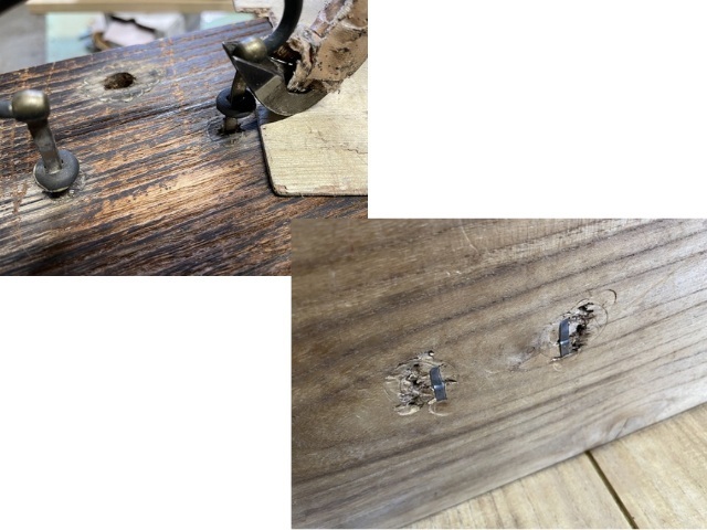 Cependant, dans les coffres modernes en paulownia, il est maintenant plus courant d’insérer des vis et de les fixer à l’arrière avec des écrous plutôt que d’utiliser des ferrures à jambes fendues.