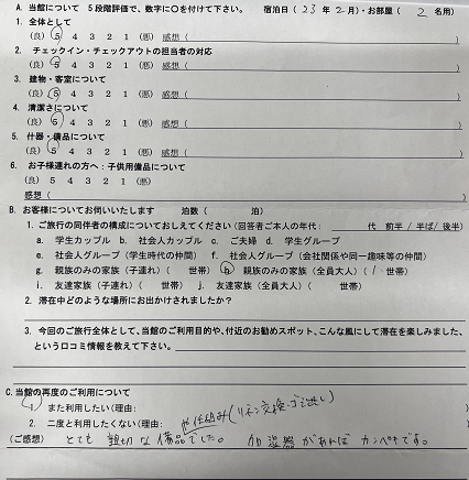 2023.2 3名用 全体として★★★★★