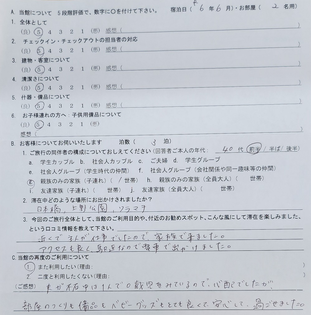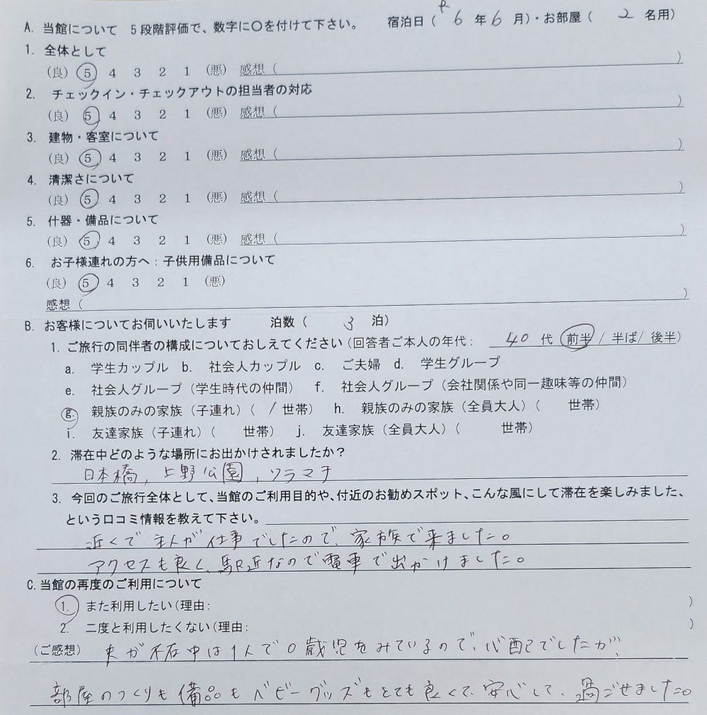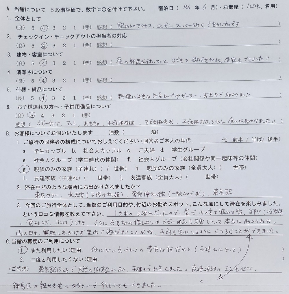 2024.6 2名用 全体として★★★★