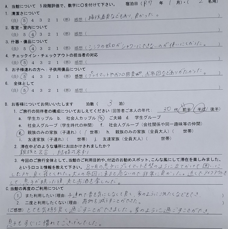 家のように過ごすことができ息子もすぐに慣れてごきげんでした。