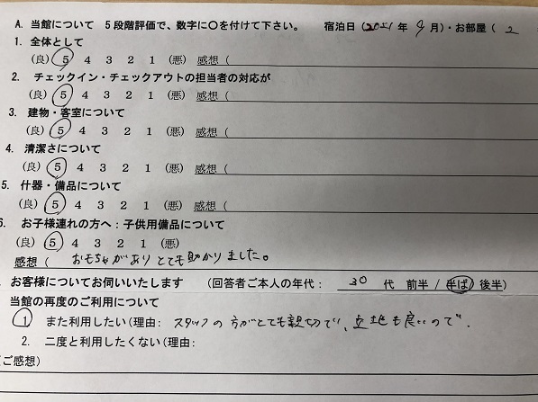 2021.9 2名用 全体として★★★★★