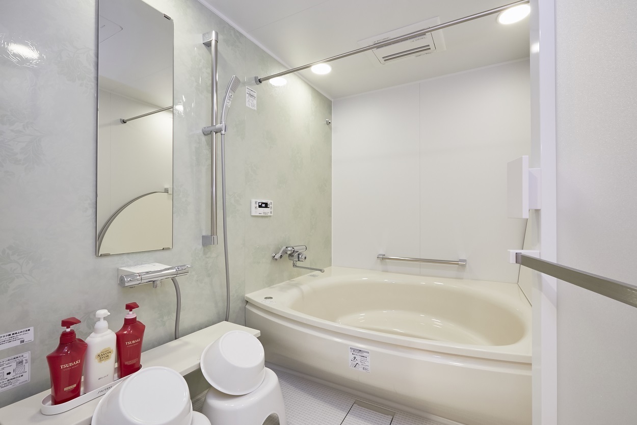 皆様に大好評の洗い場が広い、ゆったりサイズの大型浴室。