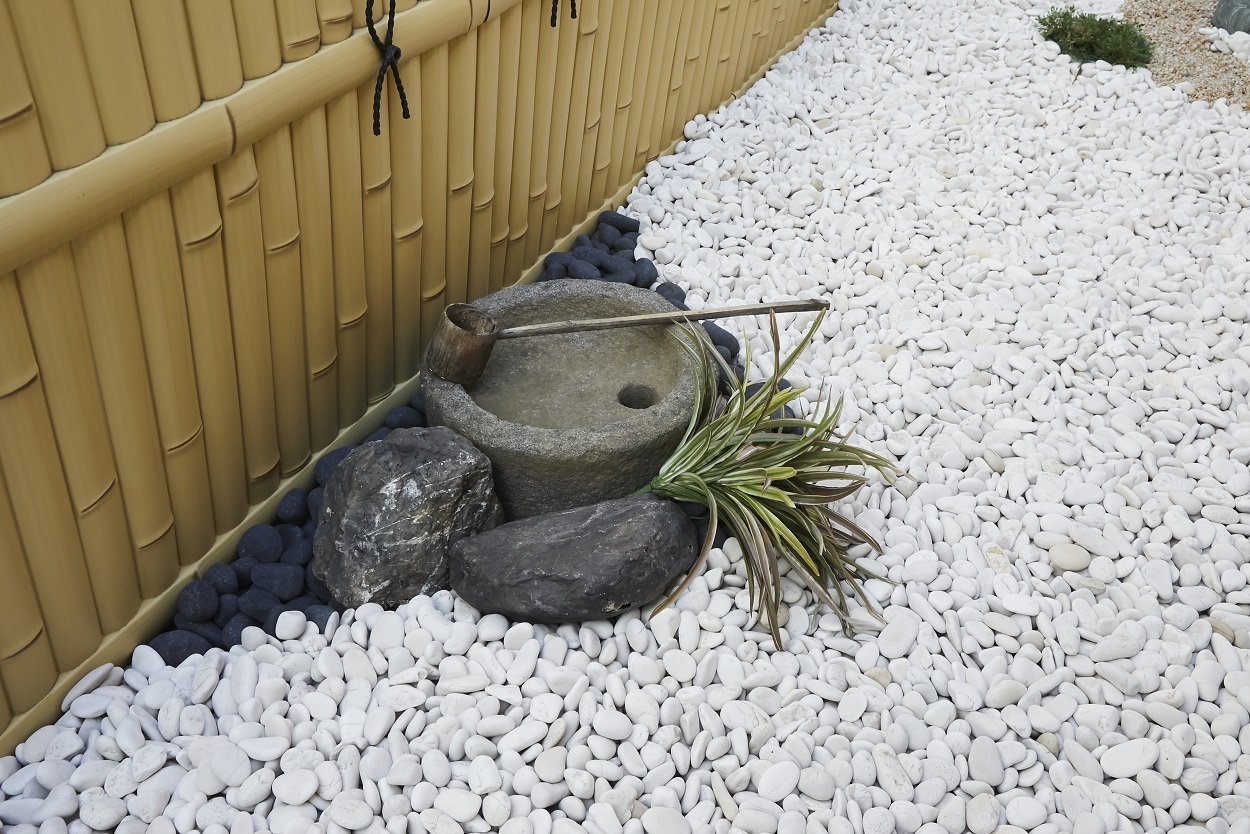 約80㎡の最上階客室。最上階という特性を活かして、和の石庭付き客室としました。
